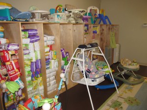 L.E.A.P. participants can receive up to four maternity outfits without credits. For other items, they redeem credits earned for attending classes, watching videos, and doing book reports. If they bring a support person to class with them, they receive additional credits. After attending three classes with a guest, the client is eligible to “purchase” a baby bath tub filled with diapers, wipes, infant toiletries, blankets, towels, sheets, clothing (newborn to 24 months) and much more. After completing twelve of the LEAP classes, she is eligible for a diaper bag layette without charge. It is filled with all new items when the baby is born. The EARN as YOU LEARN program can provide the client with many essential needs such as: